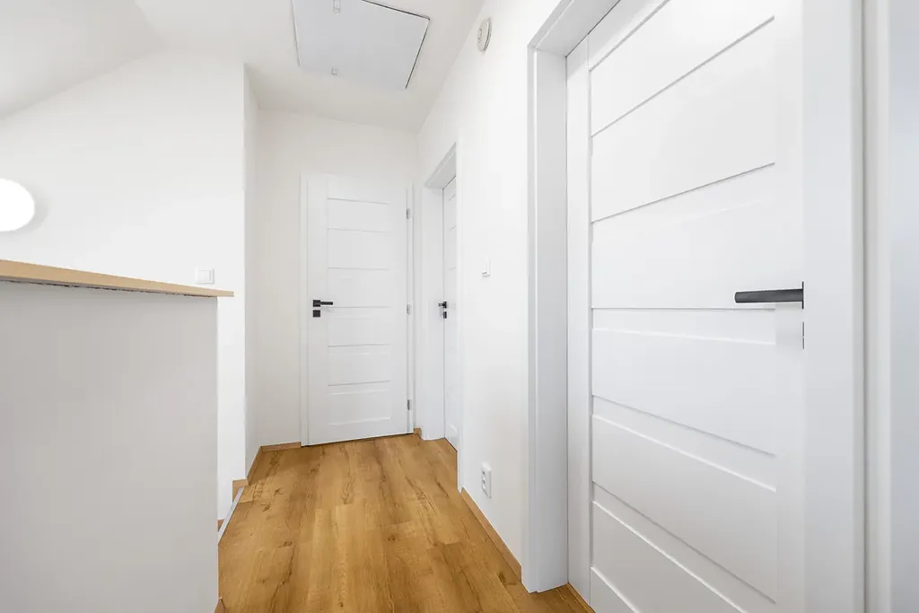 Dům vypadá přesně jak vidíte na fotografiích, nejedná se o vizualizaci. Kuchyně je vyrobena na míru a kompletně vybavená spotřebiči (elektrická trouba, mikrovlnná trouba, indukční deska, myčka). Kuchyně do tvaru L je velkorysá s důrazem na dostatek úložných prostor a pohodlí při každodenním využívání.