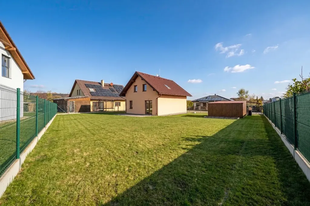 Dům stojí na rovinatém pozemku o celkové výměře 657m2 se zastavěnou plochou 74m2. Pozemek je oplocený ze všech stran a dále se na něm také nachází montovaná garáž s vjezdovou bránou.