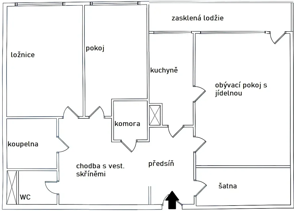 • Prostorný obývací pokoj se vstupem na zasklenou lodžii, ideální pro posezení či relax