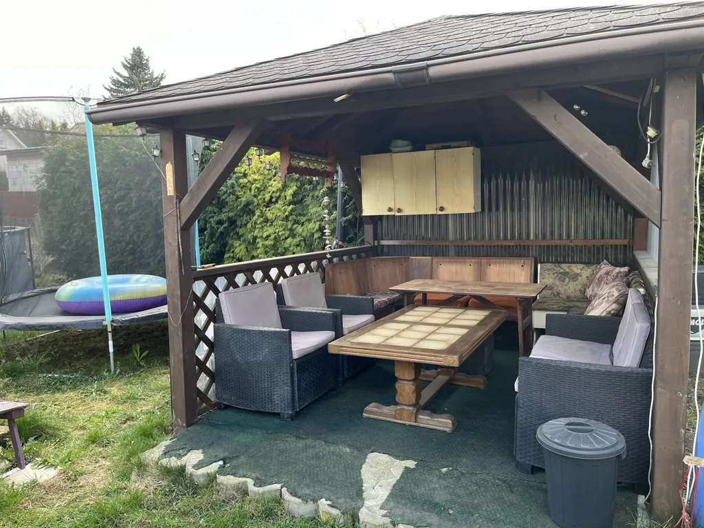 Nabízíme k prodeji zahradu o výměře 362 m² s chatou o výměře 17 m². V přízemí se nachází kombinace obývacího pokoje s kuchyní a obytné podkroví. Pod chatou je vybudován malý sklep. WC je chemické, možnost zřízení splachovacího. Na udržované zahradě je skleník, pergola, bazén a dílna na nářadí. Z ovocných stromů je zde broskev, švestka, meruňka, jabloň, dále víno a angrešt. Je zde příprava na možnost parkování přímo na zahradě. Voda sezonní.