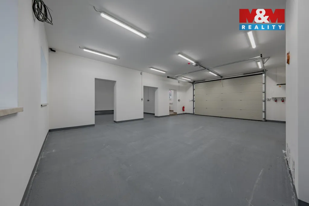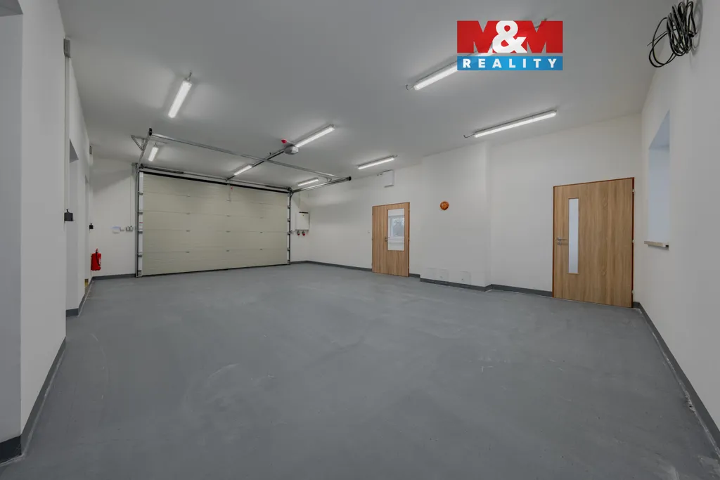 Součástí tohoto prostoru o výměře 128 m2 je sociální zázemí - WC, sprcha, šatna a kuchyňka. Výška 3 m, výška vrat 2,9 m. Vytápění el. přímotopy. Součástí nájmu je i manipulační prostor před nemovitostí o výměře 136 m2 s možností parkování až 5 automobilů. Po dohodě je možno přidat i venkovní prostor o velikosti 363 m2, který lze používat jako venkovní sklad. Příjezd po obecní komunikaci i pro kamiony. Ideální využití jako sklad nebo tichá dílna. K pronájmu ihned.