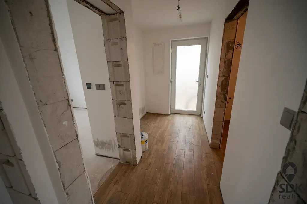 Dům má cihlovou konstrukci a je před dokončením. Je již kompletně zrekonstruován – nová střecha, kompletní izolace, zateplení, fasáda, omítky, rozvody vody a elektřiny, odpady a nová okna s trojskly.