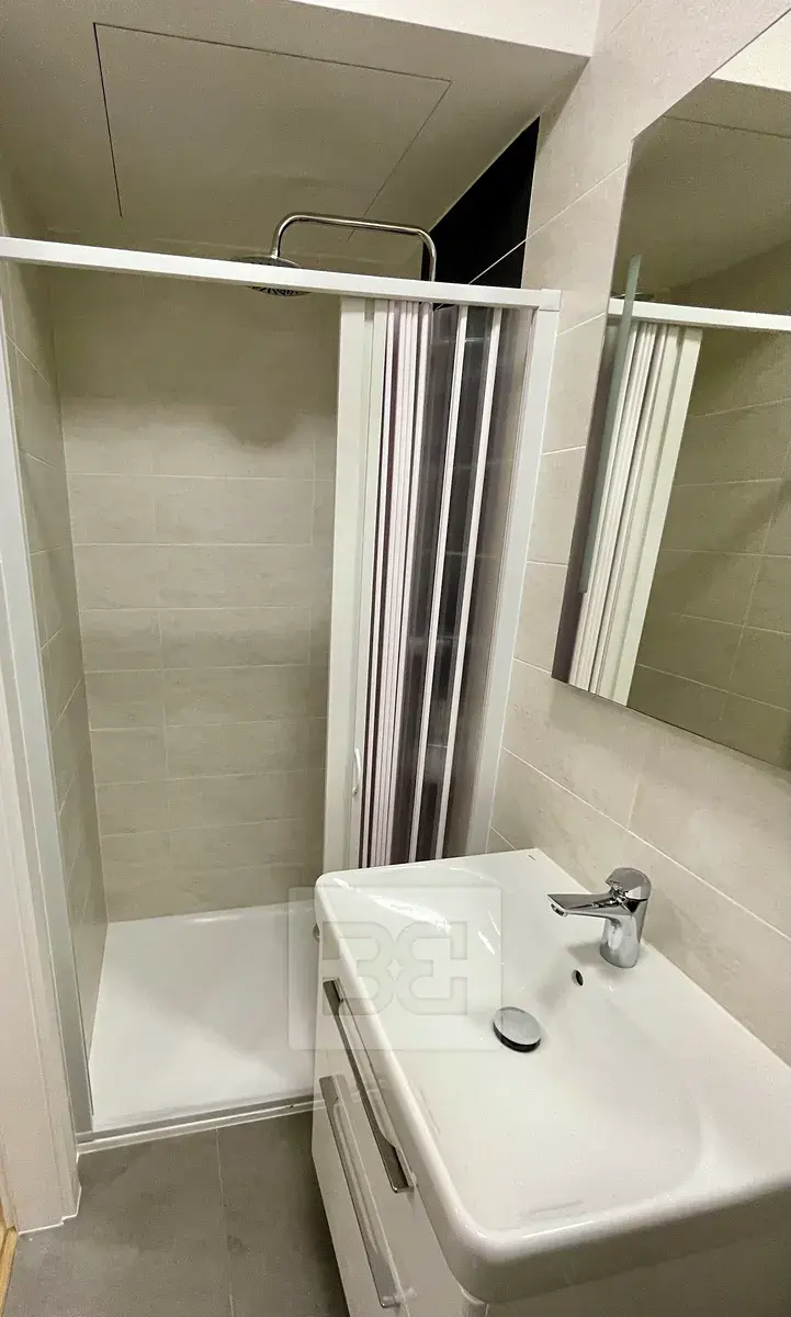 Nachází ve 2NP s výtahem a sestává ze vstupní chodby, součástí které je moderně vybavena kuchyň (elektrická varná deska a elektr. trouba a digestoř, lednice a pračka. Z předsíně je vstup do koupelny se sprchovým koutem a WC a dále pak do pokoje, kde je vystavěno patro na spaní (2 x 2 m)