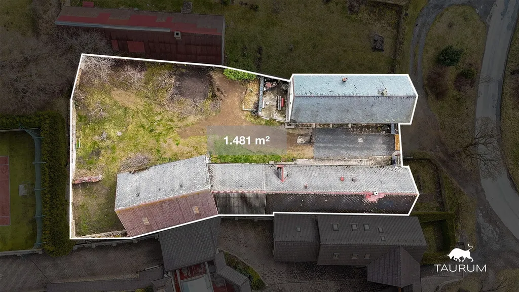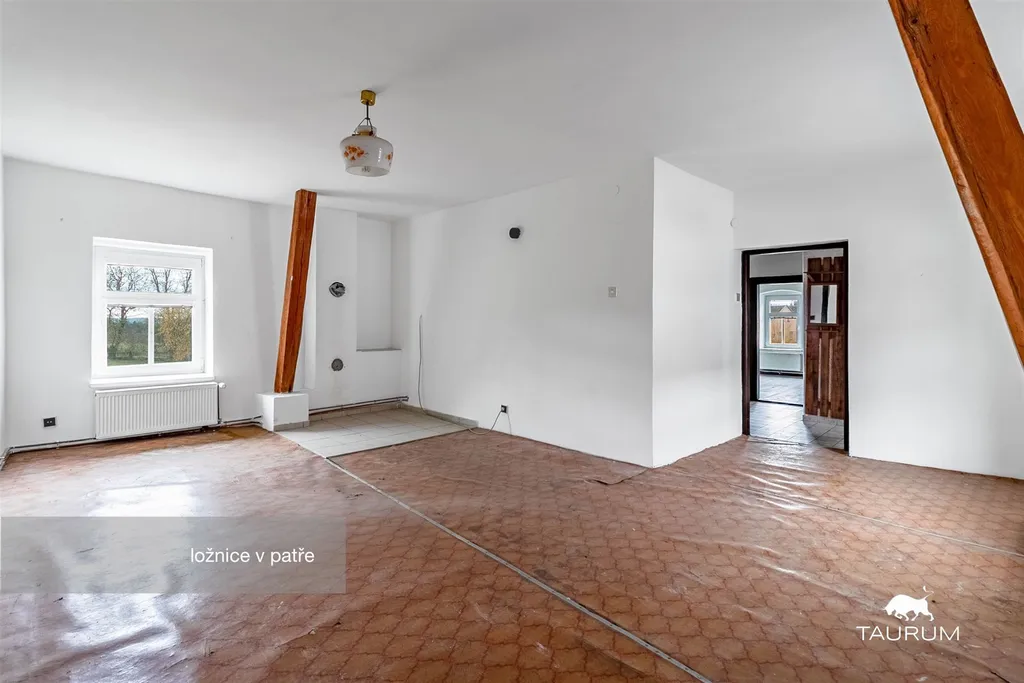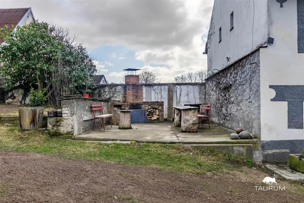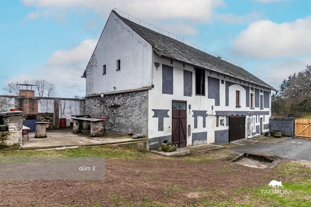 Na dům navazuje několik hospodářských budov a rozsáhlé venkovní prostory. Součástí je prostorná dílna s přivedenou elektřinou, využitelná i jako skladovací prostor. Na ni navazuje stodola. Půdní prostor nad prvním domem je rozlehlý a sloužil ke skladování sena. Střešní krytinu tvoří kombinace eternitu a pálených tašek. Dle vyjádření majitele do střechy nezatéká, ačkoliv její stav již není ideální. Na pozemku se nachází i venkovní krb s udírnou.