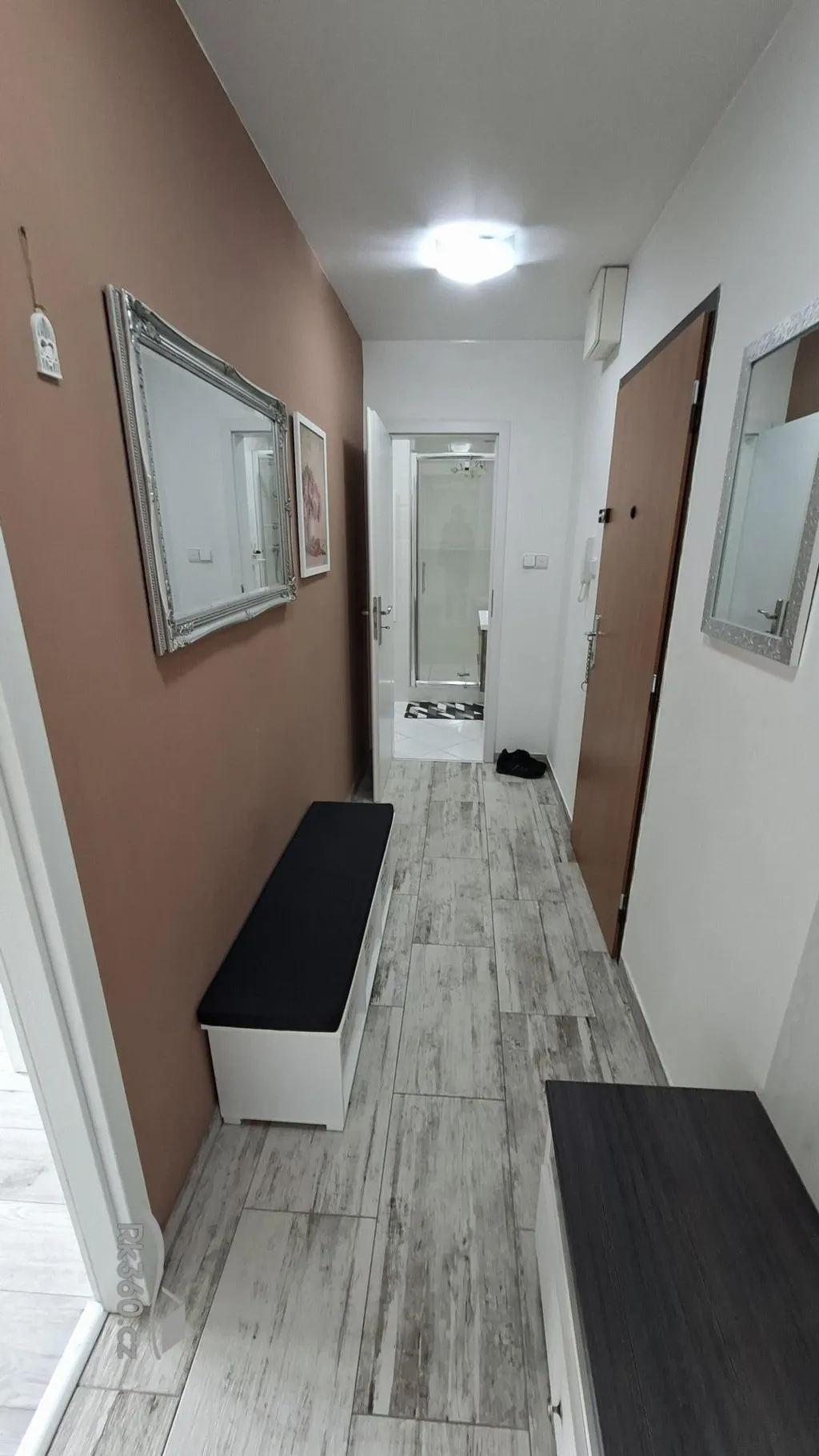 Předsíň: botník a vstup do šatny.