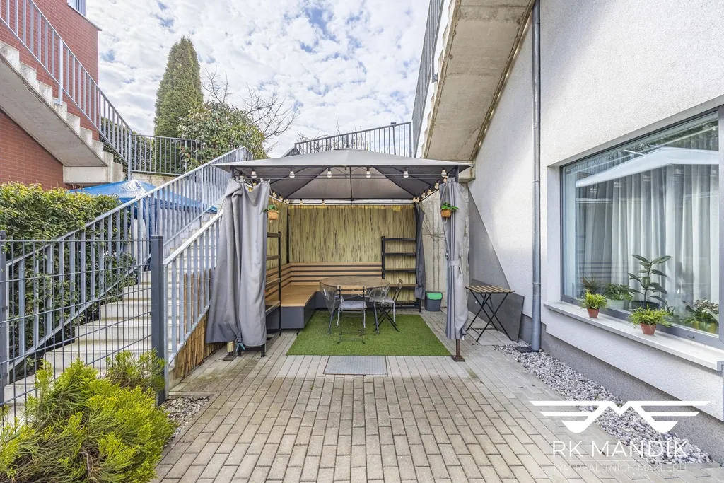 Nabízíme k prodeji byt 2+kk o celkové ploše 59,8 m², jehož součástí je prostorná zahrada 219 m² a venkovní parkovací stání 13 m² – dohromady tak získáte 291 m² využitelného prostoru.
