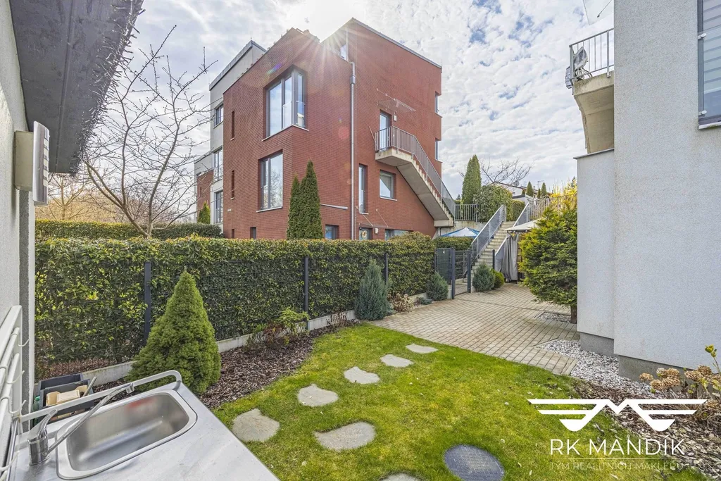 Velkou přidanou hodnotou tohoto bytu je přímý přístup na soukromý pozemek s rozlehlou zahradou 219 m², která nabízí ideální prostor k relaxaci, posezení i pěstování. Součástí pozemku je praktický zahradní domek. K bytu náleží rovněž venkovní parkovací stání o ploše 13 m². Je třeba zmínit, že na pozemku se nachází přečerpávací jímka společná pro celý dům – majiteli tak vzniká povinnost pravidelně umožnit přístup k její údržbě.