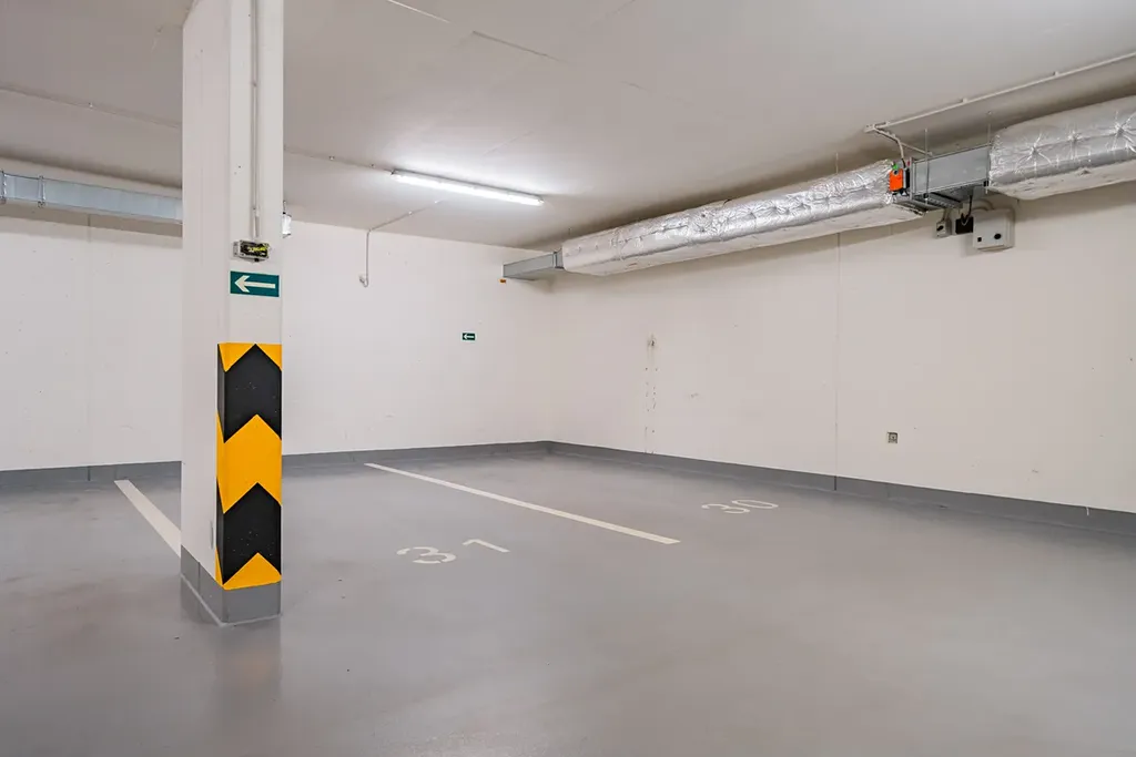 V bytě je dále komora. K bytu náleží kryté garážové stání PS 30, které je v ceně.
