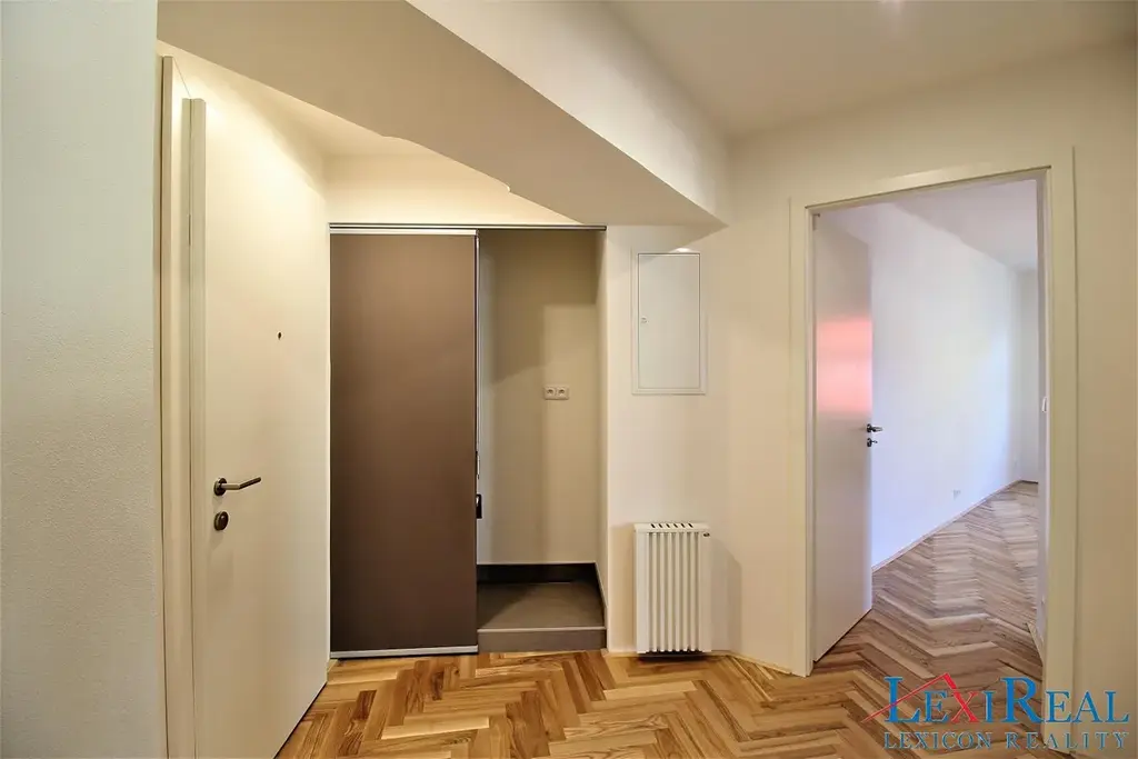 Prostorný obývací pokoj a dostatečně velká samostatná neprůchozí ložnice, moderní koupelna se spr. koutem s podlahovým topením. V domě kolárna i dvorek uvnitř domu pro možné posezení. Byt ve čtvrtém patře bez výtahu.