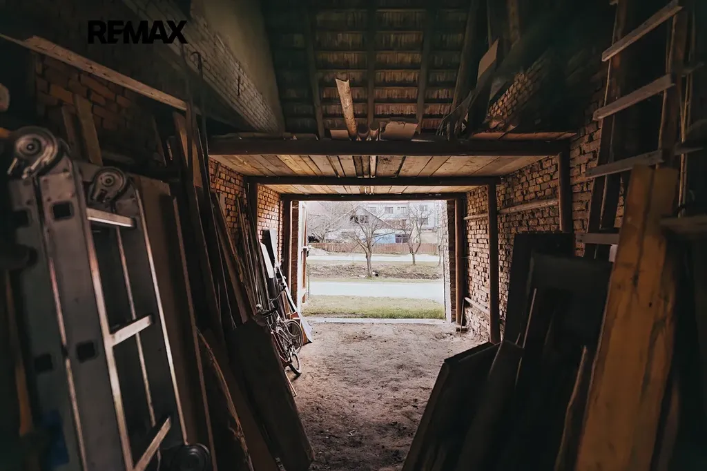 Dům je částečně podsklepen — sklep, kde dřív zimovaly brambory a jablka. Průjezd pojme až dvě auta, sekačku i všechno, co k zahradě patří. Dílna schová všechno nářadí a je prostor pro vaše tvoření, a samozřejmě nechybí 3fázová elektřina pro cirkulárku i další stroje.