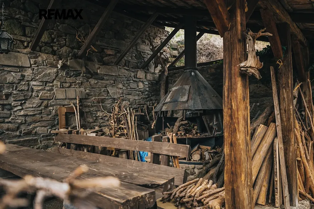 Dům z roku 1959 je pečlivě udržovaný a v roce 2006 byla provedena dostavba verandy. Má atmosféru, kterou novostavby umí málokdy vytvořit. Kuchyň s kachlovými kamny, původní kredencí a prkennou podlahou doplňuje obývák, kde dřevo v kamnech praská jako starý příběh. V každé obytné místnosti i v koupelně jsou kamna — teplo tu není funkce, ale rituál, který vás spojí s rytmem domova a přírody.