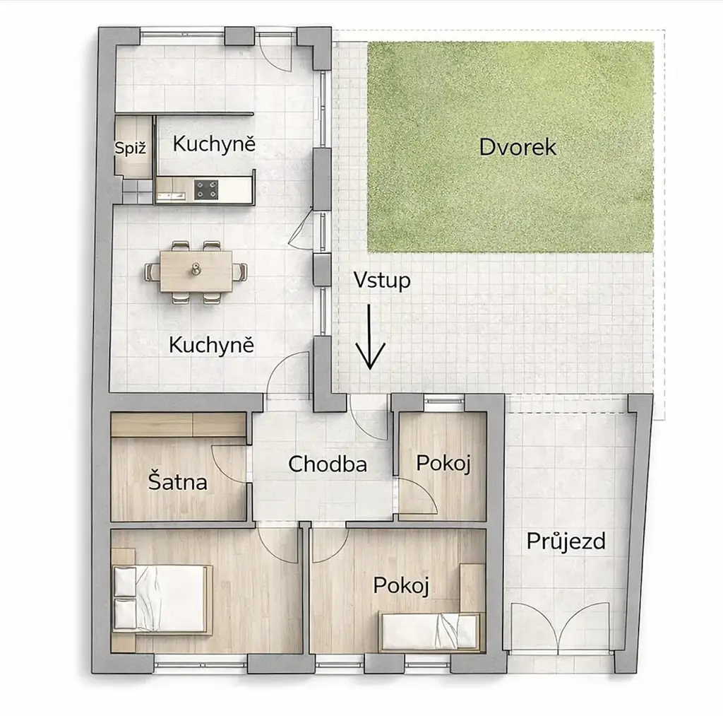 Průjezd a vstupní zádveří z dvorní části