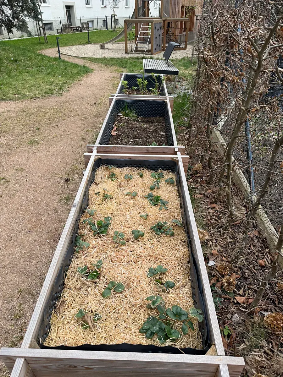 Součástí projektu je také rozsáhlá společná zahrada, která nabízí nadstandardní zázemí pro rezidenty – prostor pro relaxaci, možnost vlastního pěstování rostlin, kompostování i klidné posezení v zeleni. K dispozici je rovněž praktická čistička na kola, kterou ocení zejména aktivně založení obyvatelé.