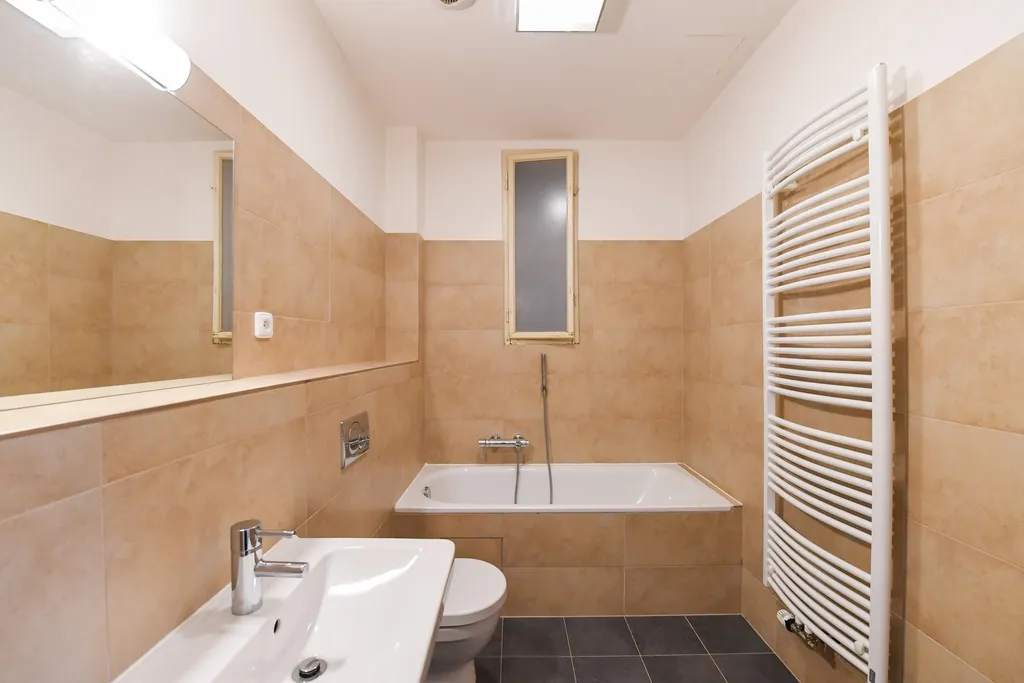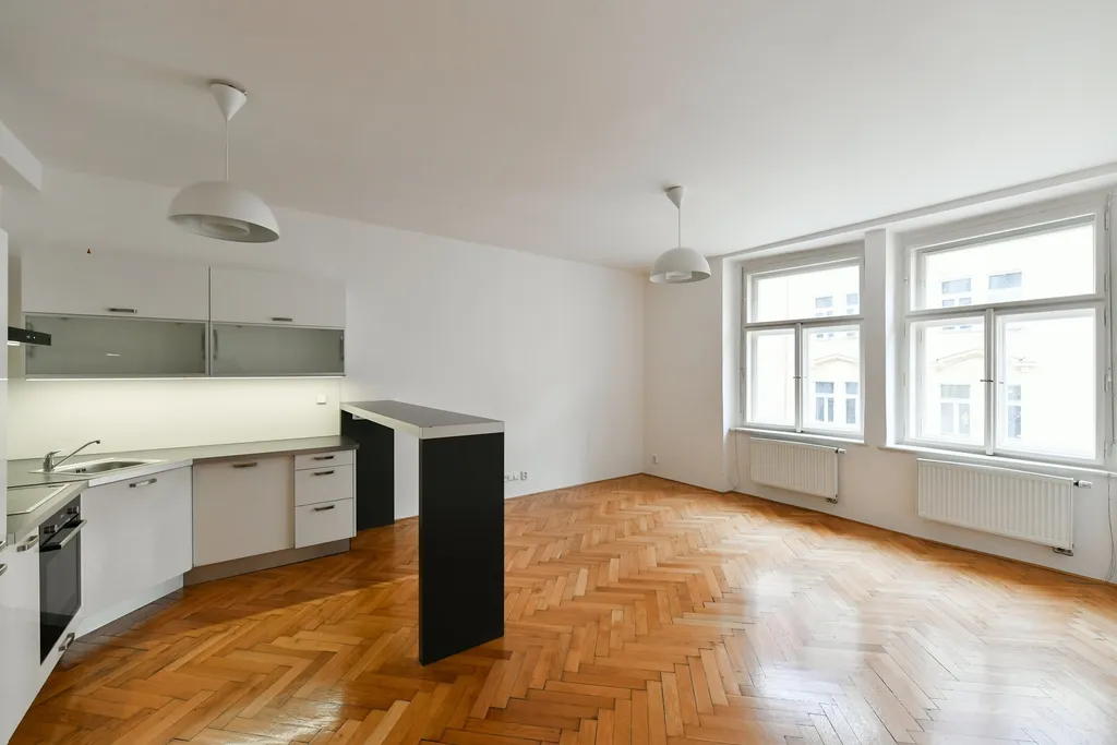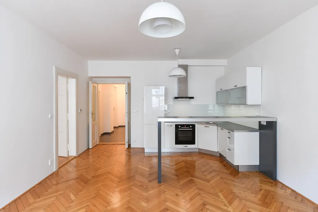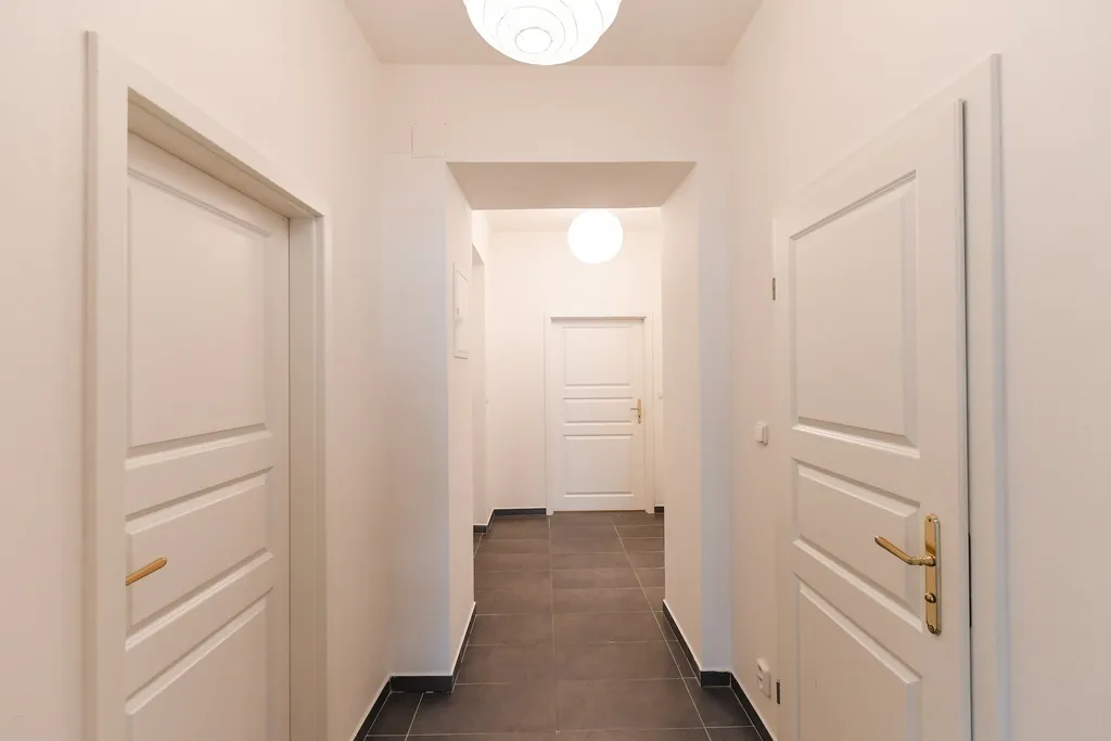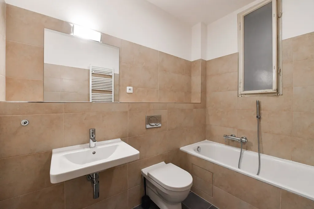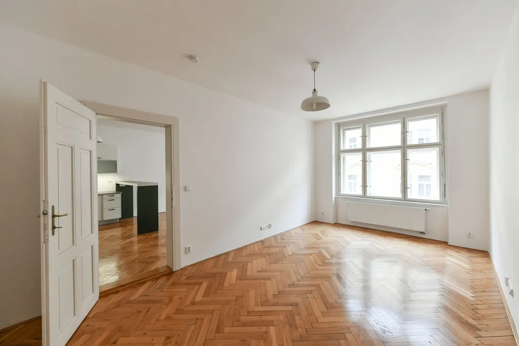 Pronájem velmi hezkého a prostorného bytu 3+kk se 2 koupelnami, o velikosti cca 85m2, ve 3.patře pečlivě udržovaného činžovního domu na rozhraní Vinohrad a Vršovic. Ideální bydlení pro rodinu, pár nebo dva spolubydlící. K dispozici je obývací pokoj s kuchyňským koutem (cca 27,5 m2) a kuchyňská linka plně vybavená vestavěnými spotřebiči, 2 koupelny se 2 WC (jedna koupelna umístěná v předsíni má vanu, druhá v ložnici je se sprchovým koutem), dvě samostatné neprůchozí ložnice (cca 21,2 m2 a 18,3 m2), komora/šatna (cca 3,5 m2). V pokojích jsou dřevěné parkety, v předsíni dlažba. Dvě místnosti jsou orientované na jižní stranu s hezkým výhledem na Prahu 4 a 10, jedna ložnice na sever. Celý dům je po rekonstrukci, nový výtah, opravené společné prostory domu, fasáda. Výborná lokalita s dobrou dopravní dostupností. Majitel bytu si nepřeje zájemce se psy. Poplatky 2.774,- Kč (nastaveno pro 2 osoby), plus elektřina a plyn se převádí na nájemce. Volné ihned.