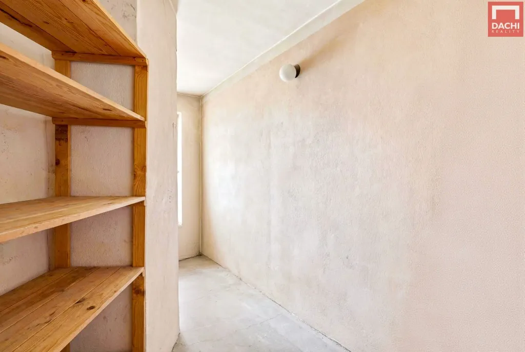 balkón o velikosti cca 8 m a sklep, který poskytuje praktický úložný prostor, spíž a šatna.