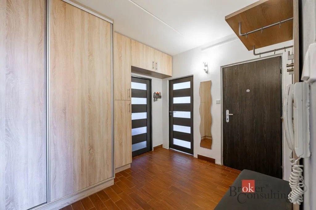 Dispozice bytu zahrnuje kuchyň, prostorný obývací pokoj, ložnici, samostatný pokoj a koupelnu s WC. V obývacím pokoji se nachází krb na biolíh, který vytváří příjemnou atmosféru a dodává interiéru moderní prvek.