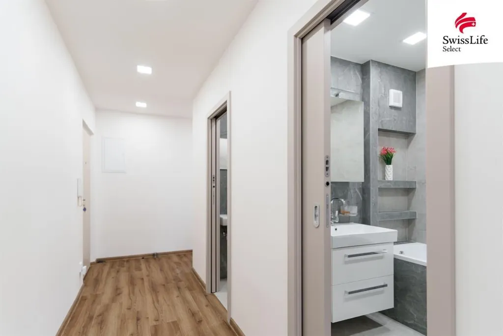 Byt prošel kompletní zdařilou rekonstrukcí včetně nové kuchyňské linky, nových rozvodů a nových podlah v celém bytě. Koupelna i WC jsou obložené moderními obklady a mají praktické zásuvné dveře. V bytě jsou plastová okna a nové interiérové dveře. V obýváku a kuchyni jsou zvenku nainstalované elektricky ovládané předokenní rolety. Vstup do bytu chrání bezpečnostní dveře NEXT. Na chodbě je vestavěná skříň, která maximálně využívá prostor k uložení věcí.