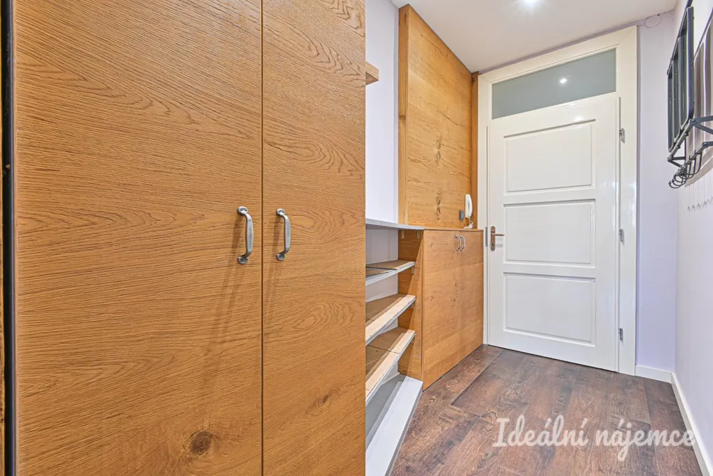Byt je plně vybavený dle fotografií.. Kuchyň je vybavena moderními spotřebiči včetně vestavěné trouby, varné desky, myčky a lednice. Obývací část nabízí sedací soupravu, konferenční stolek a stylové dřevěné prvky. Ložnice je zařízena manželskou postelí a dostatkem úložného prostoru. V koupelně se nachází sprchový kout, umyvadlo a toaleta. Součástí bytu je i pračka a sušička. V ceně je zahrnut internet.