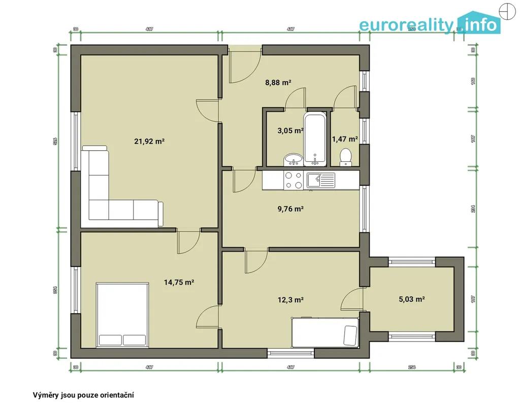 Celková plocha činí 82 m², z čehož zimní zahrada o velikosti 5 m² představuje velmi příjemný bonus, který rozšiřuje obytný prostor a nabízí ideální místo pro relaxaci během celého roku. K bytu dále náleží dva sklepy které zajišťují dostatek úložného prostoru.
