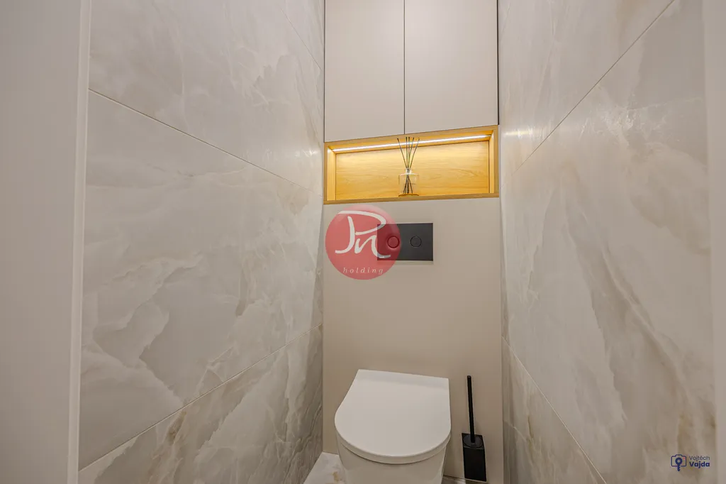 Podlahy jsou vylité znovu – žádné vrstvení na staré základy. Elektroinstalace je kompletně nová v celém bytě, stejně jako odpady a rozvody vody. Každá část má svůj standard, který držíme napříč realizacemi.