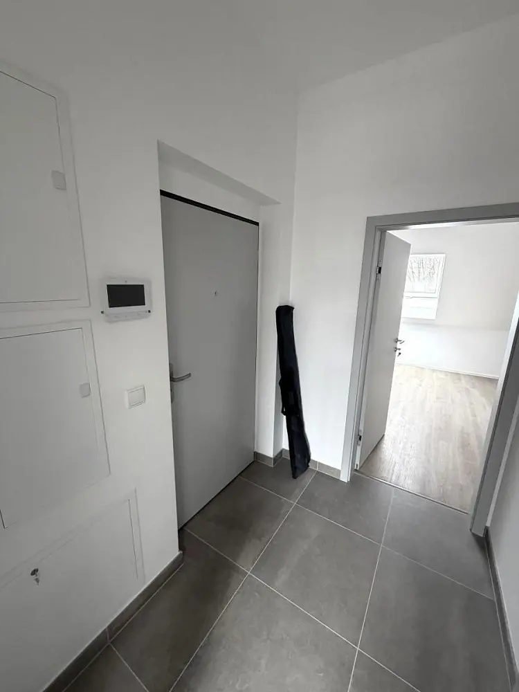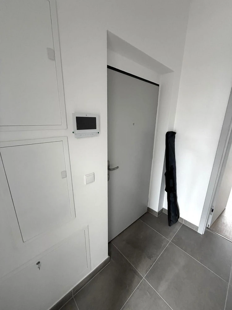 Vstupními dveřmi vejdeme do předsíně o celkové výměře cca 3,72 m². Z této je vstup do ostatních místností v bytě. Dominantou celé bytové jednotky je obývací pokoj s kuchyní o výměře cca 20,02 m².