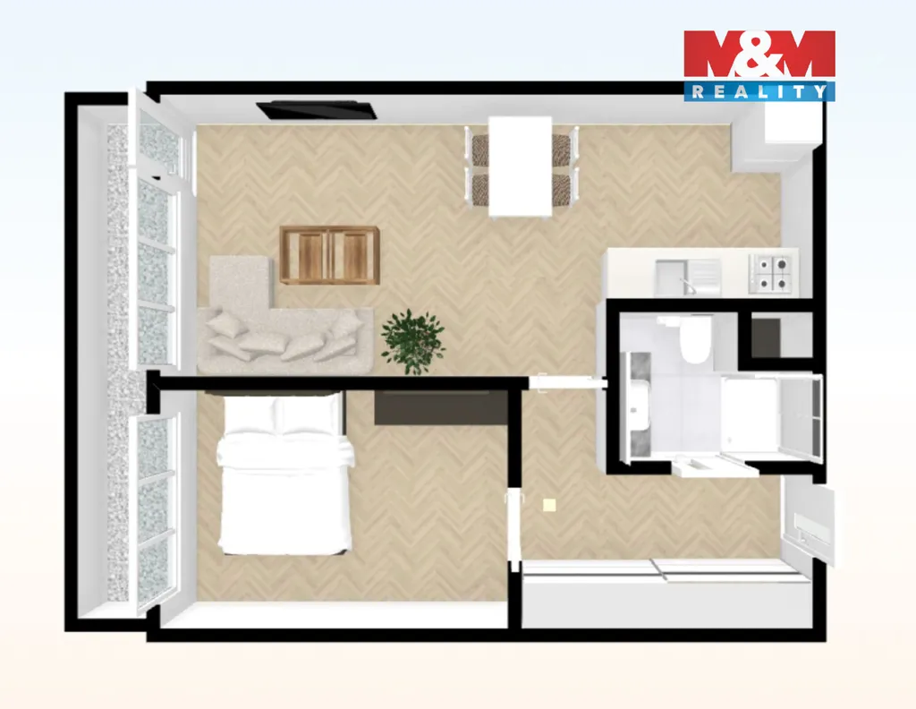 Měli bychom pro vás aktuální nabídku bytu 2+kk o podlahové ploše 40 m2. Mezi velké předností toho bytu patří zasklená lodžie o výměře 5 m2 a komora hned vedle bytu o rozměrech 1 m2. Tento byt se nachází ve čtvrtém patře panelového domu a skládá se ze vstupní chodby, koupelny se sprchovým koutem a toaletou, ložnicí, Kuchyně s obývacím pokojem se vstupem na lodžii.
