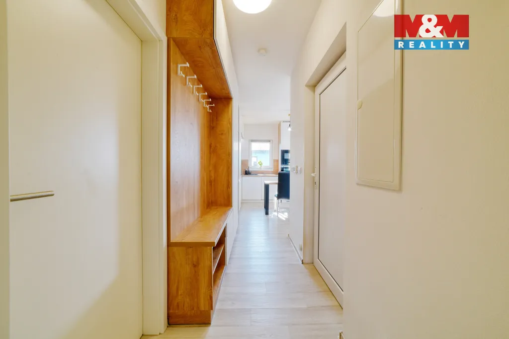 Hledáte bydlení v menším rodinném domě s prostornou zahradou? Nabízíme novostavbu (kolaudace 2022) o dispozici 3+kk, která se nachází v obci Šabina, cca 7 km od Sokolova. Jedná se o nepodsklepenou dřevostavbu s jedním nadzemním podlažím, půdorysu tvaru „L“, s otevřenou terasou o výměře 32 m², ze které je přímý vstup do domu. Dům o podlahové ploše 54,74 m² nabízí obývací pokoj s kuchyňským koutem, ložnici, samostatný pokoj a koupelnu s WC. Vytápění je řešeno kombinací elektrického podlahového vytápění a krbových kamen jako doplňkového zdroje. Komfort zvyšuje klimatizační jednotka a rekuperační jednotky v pokojích. Ohřev vody zajišťuje elektrický bojler. Na jižní straně střechy je instalován fotovoltaický systém. Z ložnice a obývací části je přímý vstup přes velká posuvná okna na terasu, ze které se nabízí krásný výhled do okolí. Parkování cca pro 3 auta je možný na zpevněné ploše. Pozemek o výměře 967 m² je mírně svažitý a má pravidelný obdélníkový tvar. V případě zájmu nás kontaktujte.