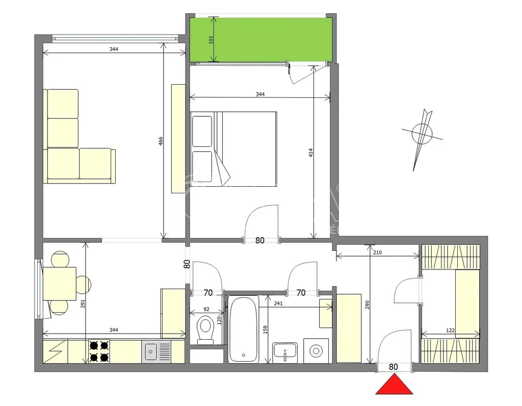 Byt není zařízen nábytkem, pronajímá se tak, jak ho vidíte na fotografiích.