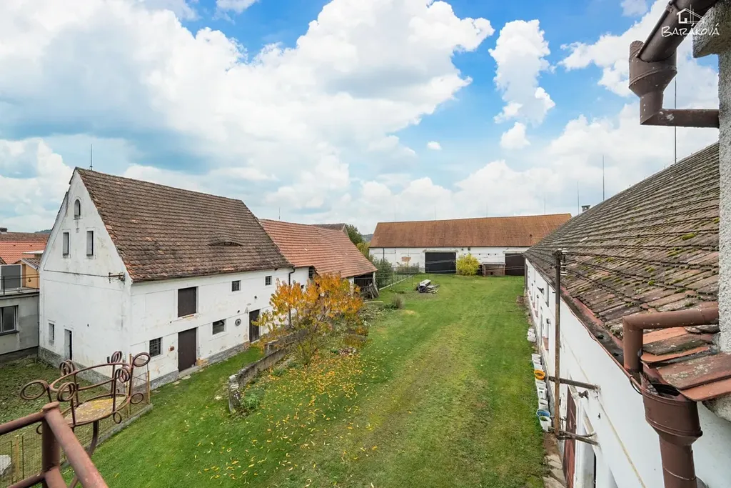 Na rozlehlém pozemku se nachází několik hospodářských budov, například chlévy, stáje, dvě velké stodoly, dvě garáže, stará sýpka a seník.