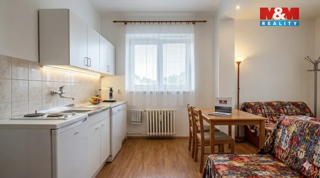m² v cihlovém domě v centru Pardubic. Byt se nachází v 1. nadzemním podlaží (dům má 5 nadzemních a 1 podzemní podlaží) a je v dobrém stavu. Dispozice bytu zahrnuje vstupní chodbu, obývací pokoj, samostatnou kuchyň a koupelnu. Jedná se o praktické řešení pro jednotlivce nebo pár. Výhodou je poloha s výbornou dostupností MHD, obchodů a služeb. Byt se pronajímá s lednicí a pračkou. V koupelně se nachází sprchový kout.
