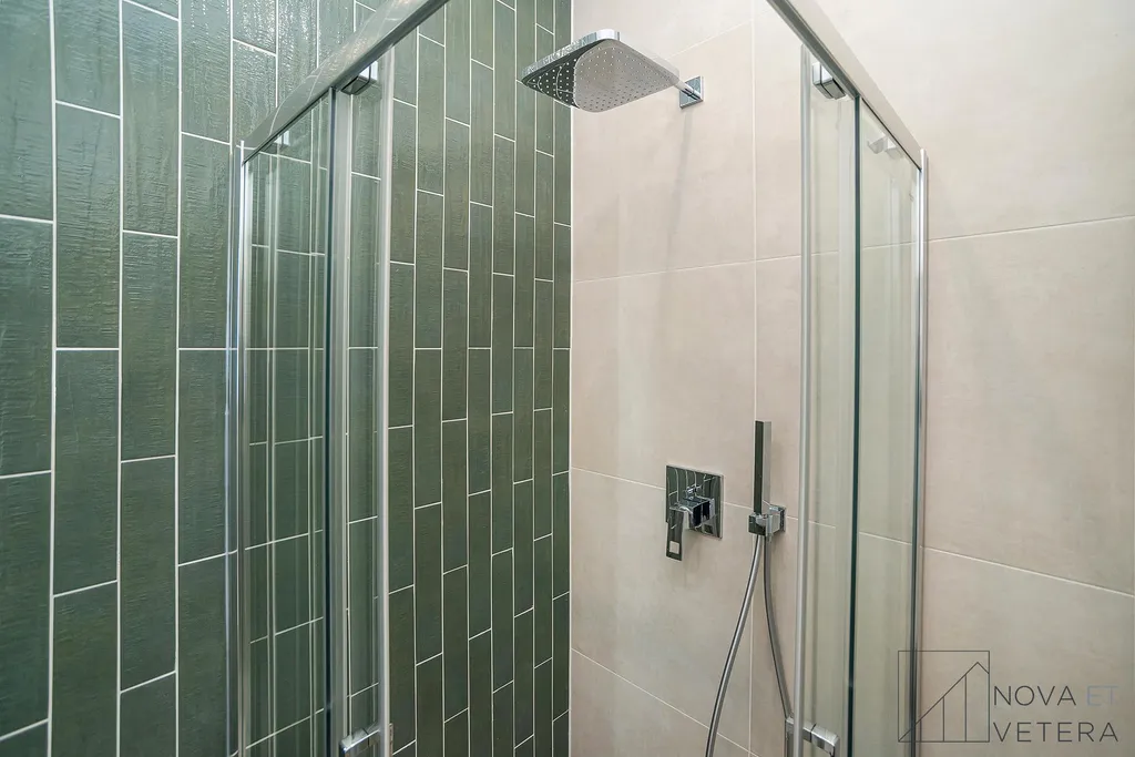 Byt prošel v loňském roce kompletní rekonstrukcí. Nábytek na fotografiích je pouze ilustrativní. Součástí vybavení je nová kuchyňská linka se spotřebiči značky Gorenje (kombinovaná chladnička s mrazákem, myčka, trouba, sklokeramická varná deska a odsavač par). V ložnici i na chodbě jsou k dispozici vestavěné skříně.