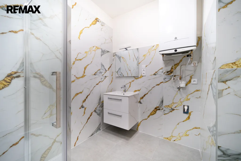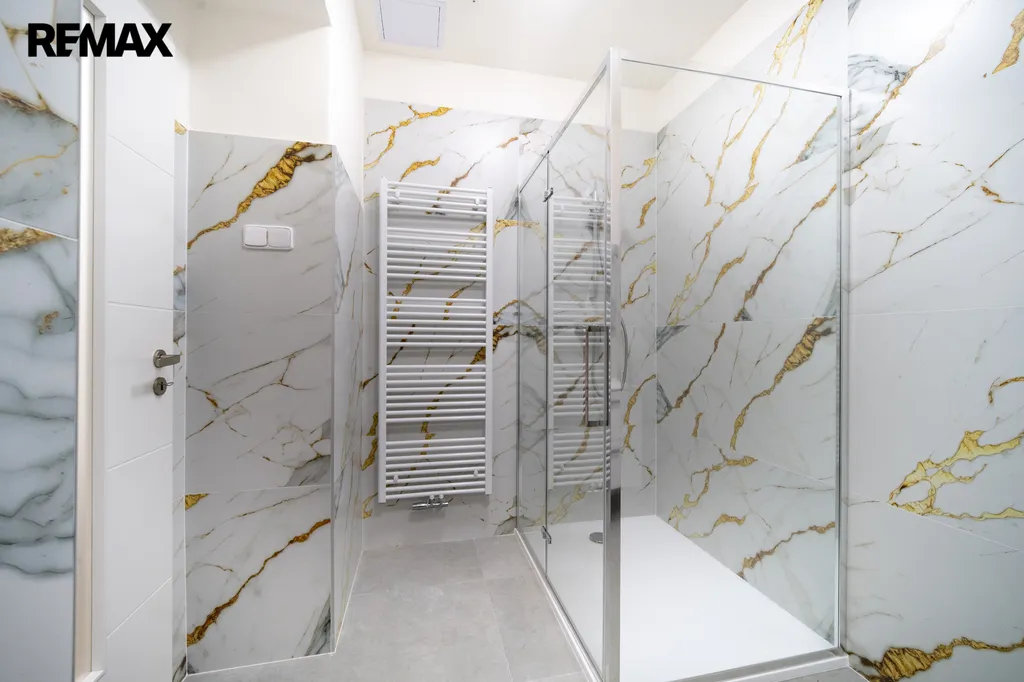 - koupelna se sprchovým koutem, umyvadlem, toaletou a topným tělesem