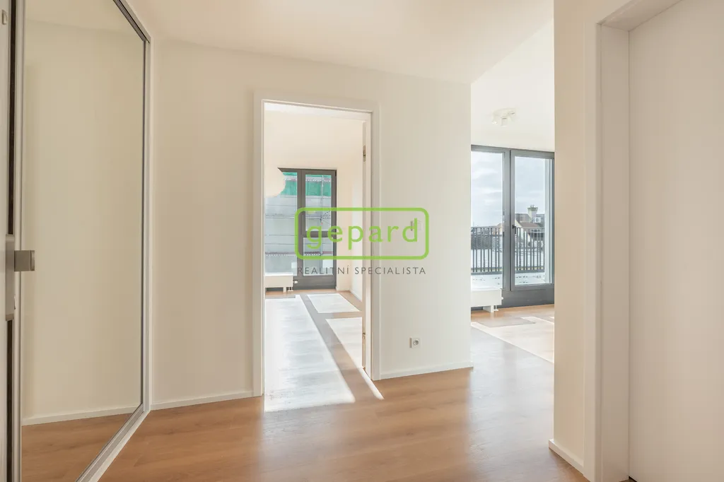 Dovolujeme si Vám nabídnout k dlouhodobému pronájmu zcela nový moderní byt 2+kk ve vysokém standardu, s terasou, nedaleko zastávky metra Kobylisy. Byt 2+kk o ploše 43 m² s terasou 8 m2, se nachází v 3.NP ze 4.NP, právě dokončené Rezidence Pakoměřická.