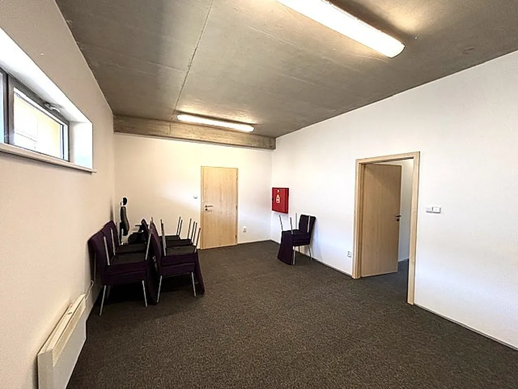 Jedná se o samostatný celek situovaný v administrativní budově. Pronajímaný prostor se rozkládá na dvou podlažích, kdy v prvním (102,12 m²) se nachází vstupní hala 8,1 m², samostatné WC, koupelna se sprchovým koutem, kuchyňka, dále pak zasedací místnost 14,4 m² a prostorná kancelář 22,6 m². Dále je zde velkorysá garáž 41 m², která může sloužit i jako sklad. Je přístupná jak z chodby, tak přímo z kanceláře. Vjezd je pak umístěn v zadní části budovy. Druhé patro je nyní řešeno jako otevřený prostor 168,99 m², který dříve sloužil jako showroom a je možné jej takto ponechat, případně majitel nabízí i možnost rozdělení prostoru na kanceláře dle potřeby nájemce.