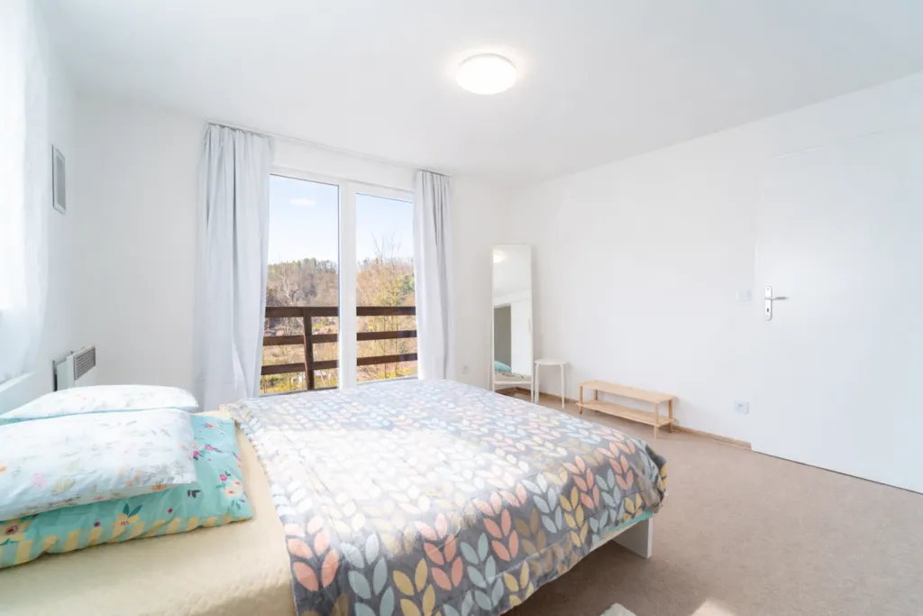Dům má dispozici 3+kk a je řešen jako dvoupodlažní stavba s balkonem o velikosti přibližně 8 m2, ze kterého se otevírá krásný výhled přímo na řeku. Nemovitost prošla v loňském roce kompletní rekonstrukcí, při které došlo mimo jiné k nahrazení původní dřevěné konstrukce zděnou stavbou z tvárnic Ytong. Dům je nově zateplený, má provedené kvalitní izolace a celkově splňuje požadavky na komfortní užívání i v rámci celoročního bydlení.