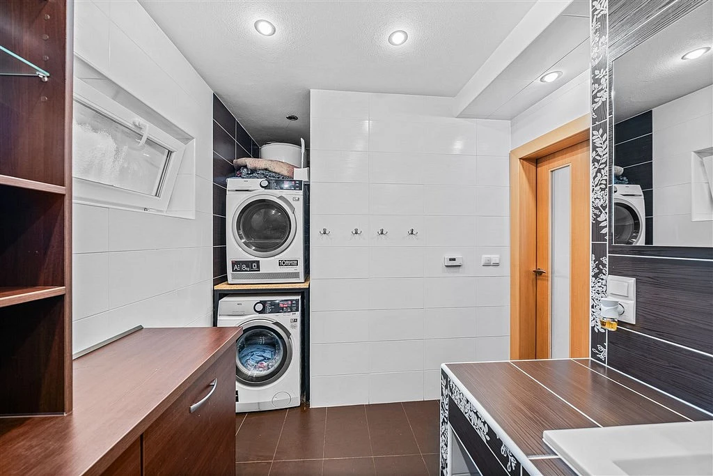 Součástí domu je dvojgaráž o ploše 41 m², krytý bazén a pergola, která nabízí ideální místo pro odpočinek i posezení s rodinou či přáteli.