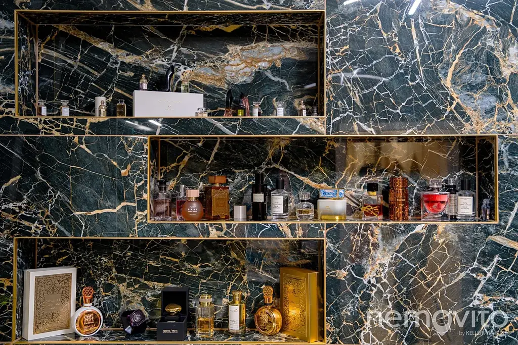 Jakkoliv je interiér specifický, použity byly výjimečně kvalitní materiály, a spousta zakázkových truhlářských prvků. Působivá je velká chodba, která tvoří hned při vstupu do bytu výjimečný dojem. Obrovský obývák, jehož plocha odpovídá velikosti celých sousedních bytů 3+kk, fungoval jako zázemí pro setkávání a je rozdělen do dvou sekcí. Kuchyně je vsazena do částečně oddělené části.