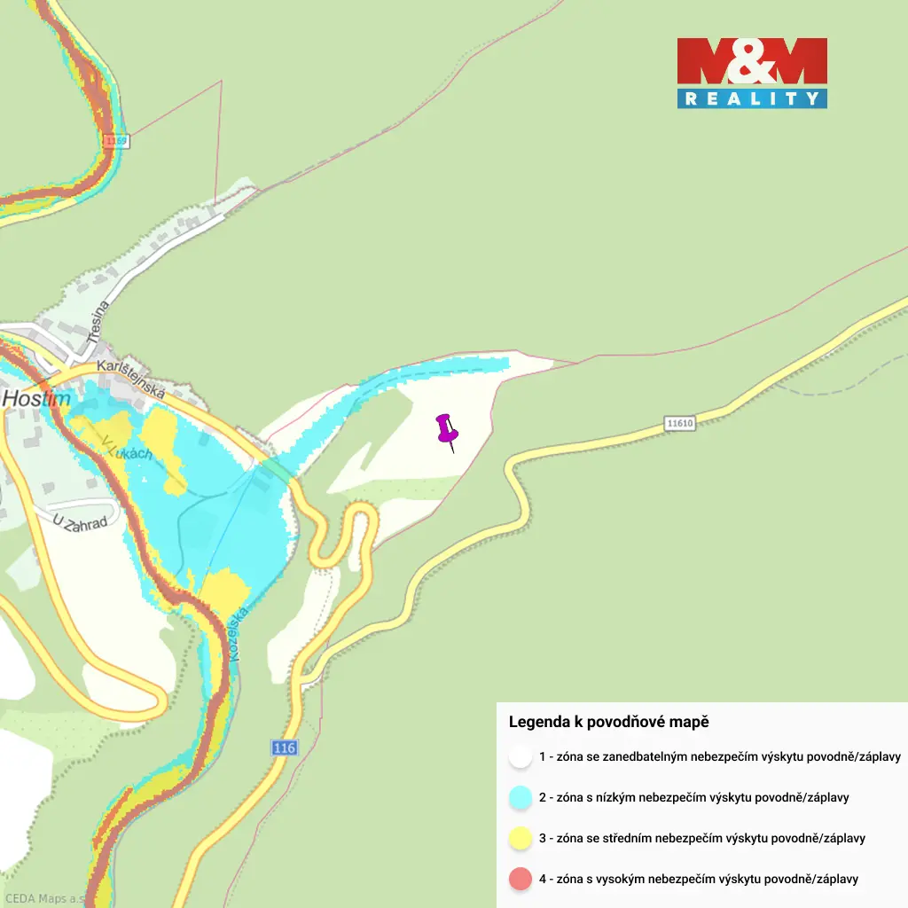 Nabízíme prodej louky o celkové výměře 2017 m² v obci Hostim u města Beroun. K pozemku vede obecní komunikace, dle územního plánu zde není možné stavět a nenacházejí se žádné ani žádné sítě. Stávající majitel uvažuje o možnosti umístit na pozemek mobilní dům.
