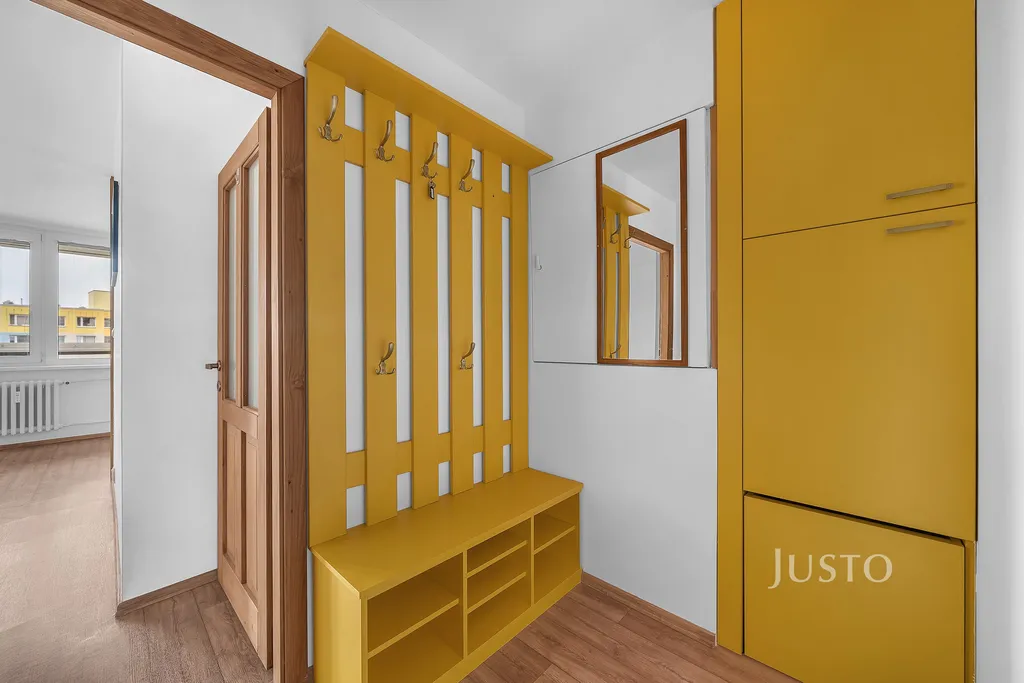 Byt je částečně vybaven – v ložnici i v druhém pokoji jsou vestavěné skříně a psací stůl, což ocení zejména rodiny s dětmi školního věku. Obrovským bonusem je komora v bytě. K bytu náleží také sklep o ploše 2 m², vhodný například pro uložení sportovního vybavení nebo sezónních věcí.