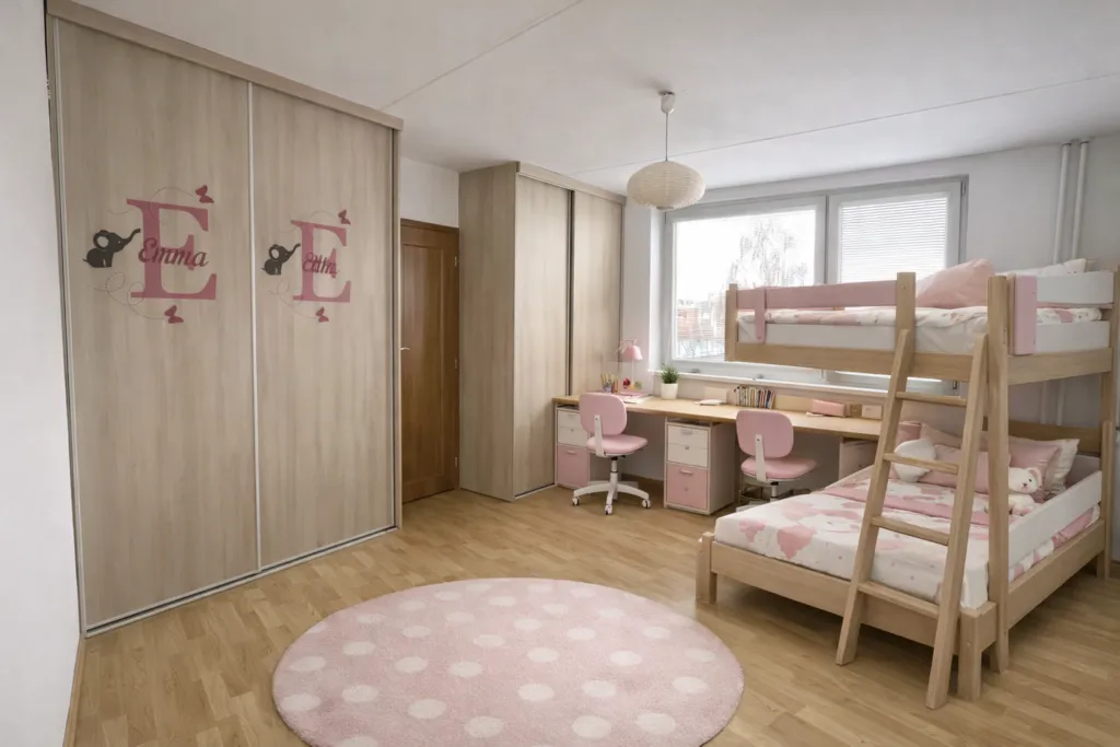 Částečné vybavení kuchyňská linka včetně spotřebičů, vestavěné skříně v ložnici, dětském pokoji i v chodbě