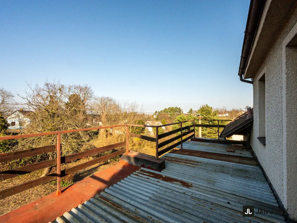 Schodiště na chodbě vás zavede do obytného podkroví, kde naleznete dvě menší ložnice, hlavní ložnici a koupelnu s toaletou. Světlá výška činí 2,5 m.