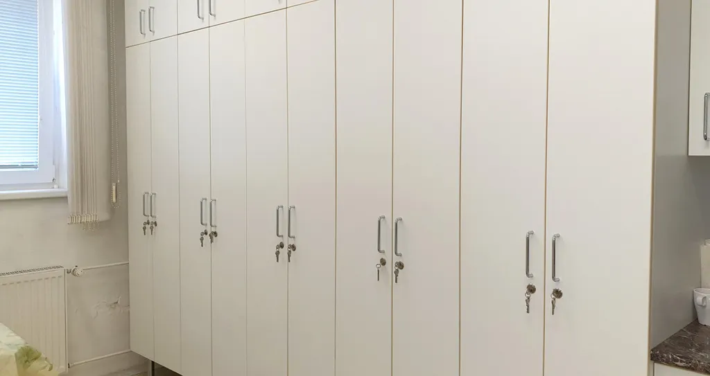 Vybavení nábytkem v prostorech je pouze ilustrativní. S vyjímkou skříní šatny a kuchyňky.
