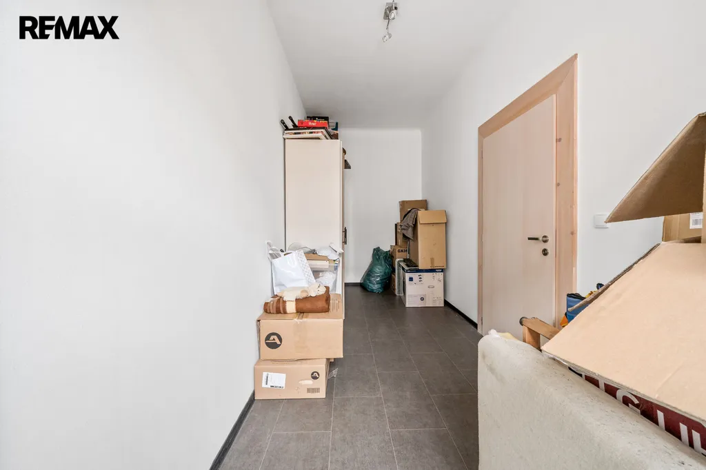 K bytu náleží velká terasa o výměře 22,8 m² a nabízí tak praktickou dispozici tří samostatných pokojů, prostornou obytnou kuchyň s jídelnou, koupelnu s vanou, WC a vstupní chodbu. Díky umístění ve vyšším podlaží působí byt světlým a klidným dojmem.