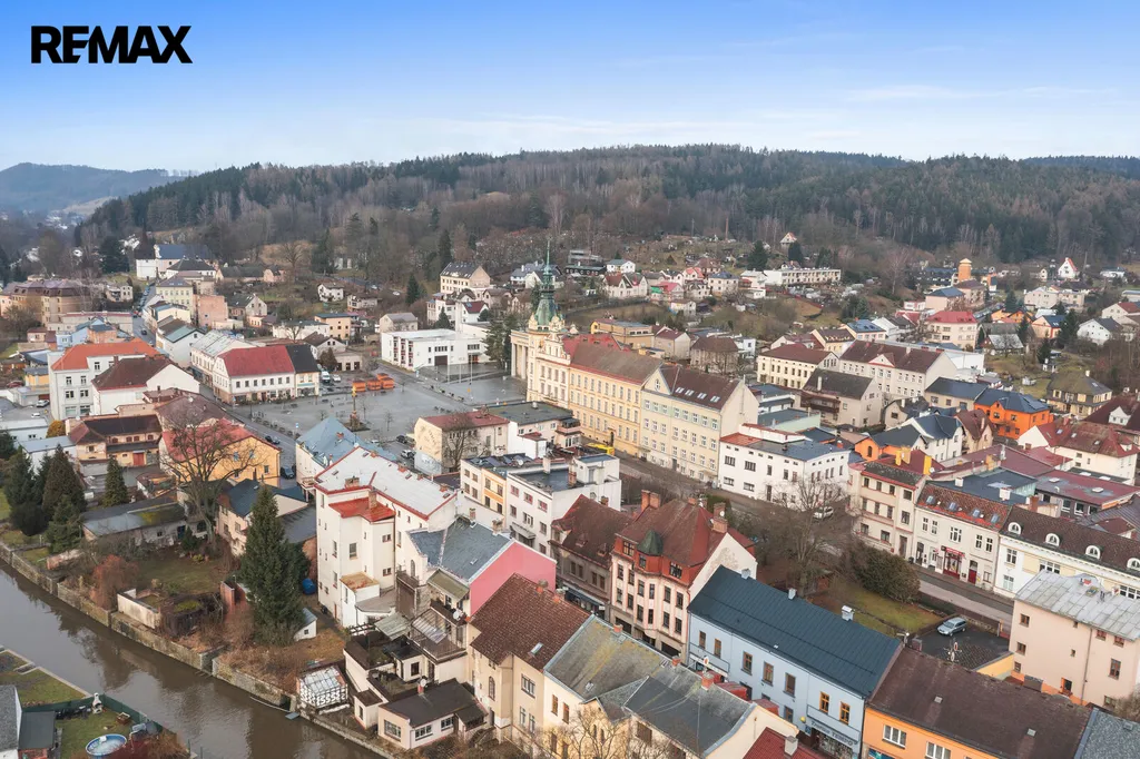 Dům se nachází přímo v centru města, v pěší dostupnosti kompletní občanské vybavenosti — obchody, služby, restaurace, škola, školka, zdravotnické zařízení i autobusové spojení.