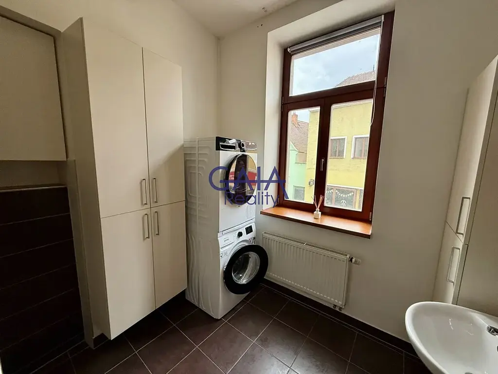 Nabízíme k pronájmu byt o dispozici 2+kk s užitnou plochou 47 m², který se nachází v 1. patře domu v centru města Kyjova.