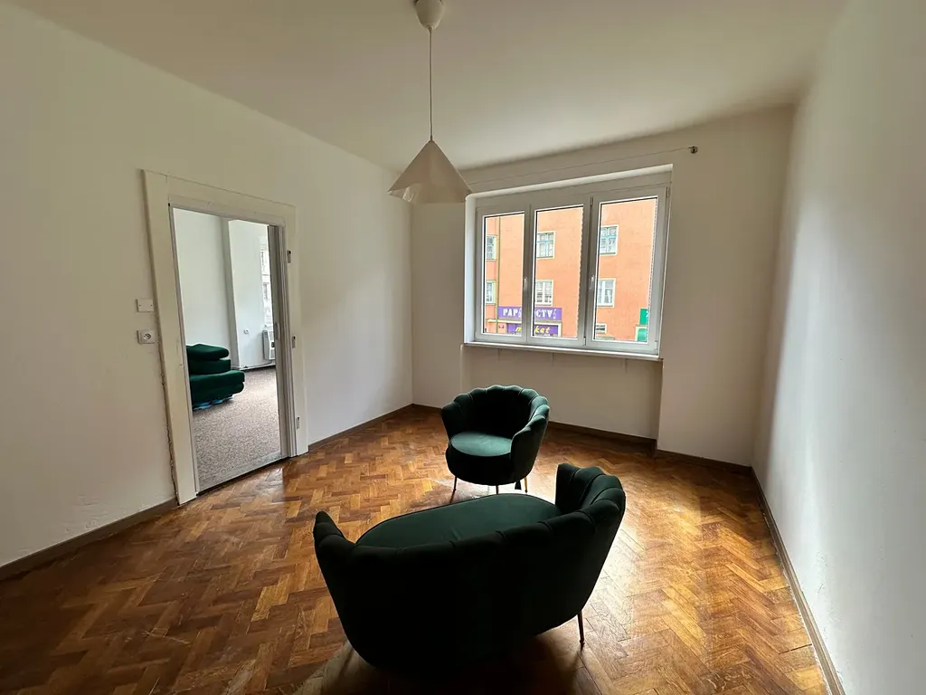 Dispozice: přízemí vlevo nebytový prostor 45,3 m2 (nehtové studio) a vpravo nebytový prostor 39 m2. První patro byt 2+1 (64.7 m2) a byt 1+1 (43.4 m2), druhé patro byt 1+1 (42.3 m2) a byt 2+1 (74 m2), třetí patro byt 1+1 (45.6 m2) a byt 2+1 (66.2 m2), podkroví garsonka (20.2 m2) a byt 1+1 (45.9 m2). Dům je plně podsklepený (8 sklepních kójí, kancelář, dílna, místnost a WC pro nebytový prostor). Dům nemá výtah. Pozemek za domem (dvůr) je jiného vlastníka.