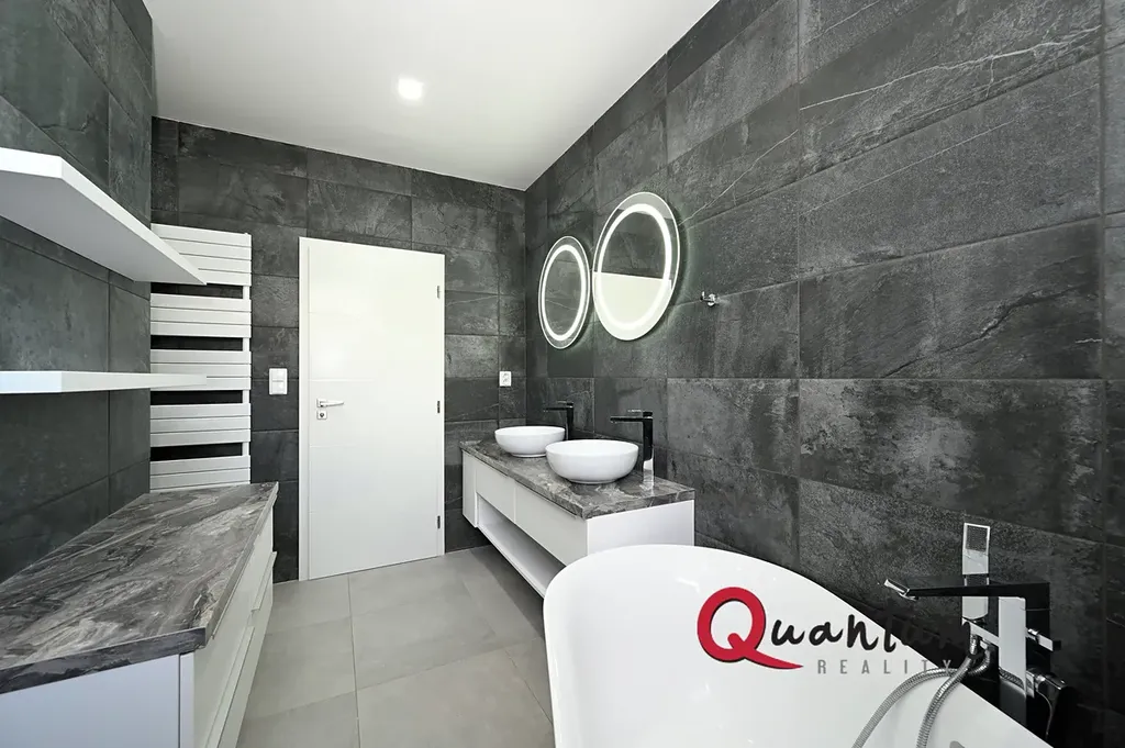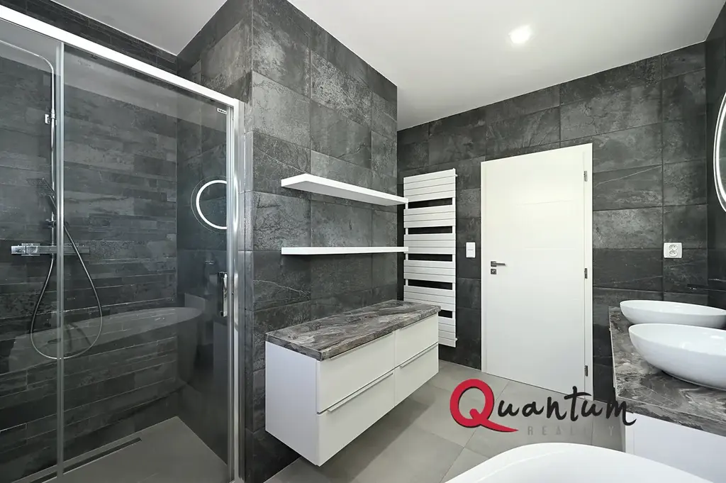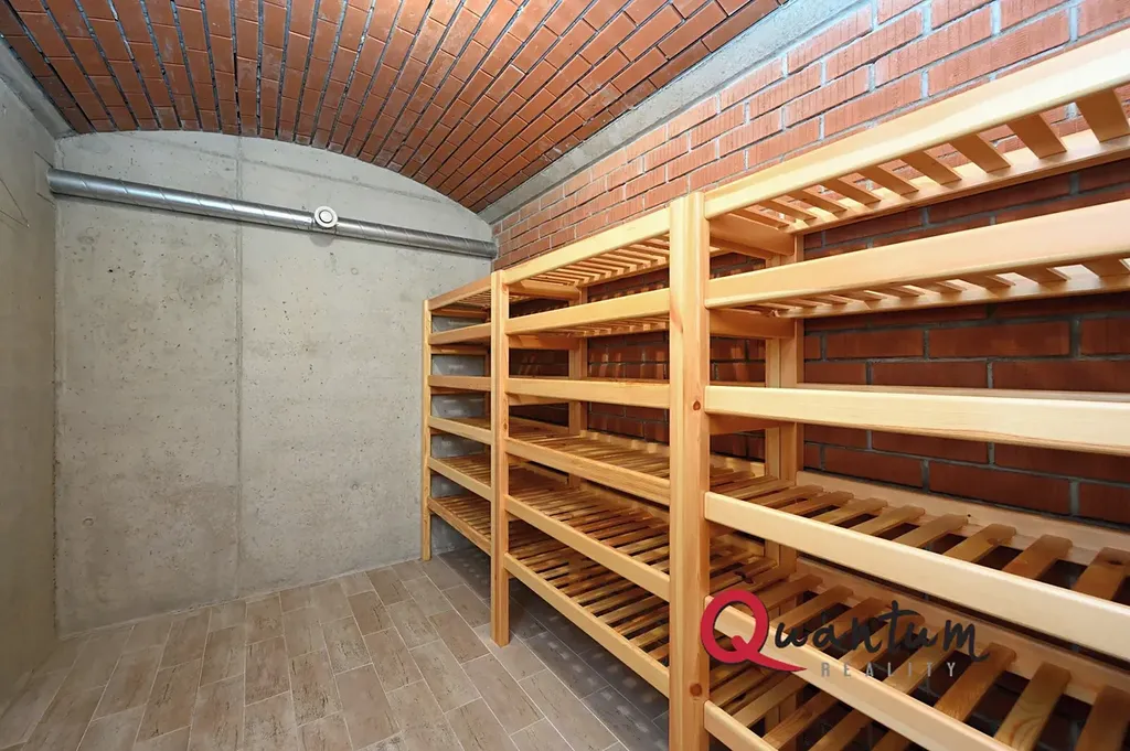 Vytápění zajišťuje vlastní plynový kotel v kombinaci s podlahovým elektrickým topením. Mezi další nadstandardní prvky patří elektricky ovládané venkovní žaluzie, bodové osvětlení v podhledech, dvě garážová stání a dva prostorné sklepy (nejsou započítány do plochy bytu), z nichž jeden je stylově upraven jako vinotéka.