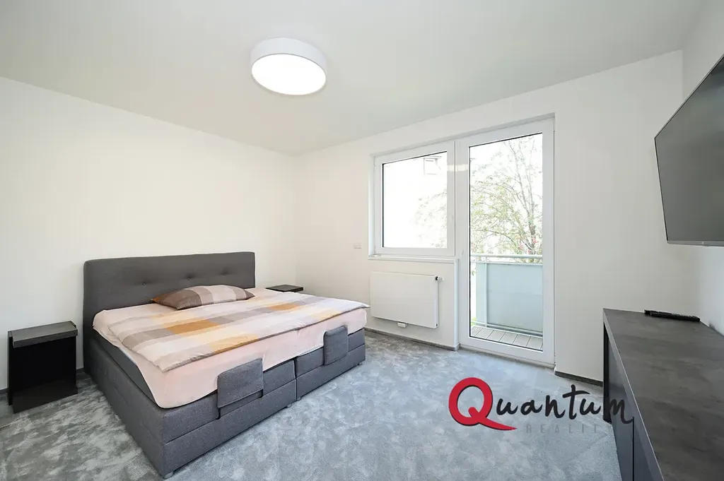 Byt se pronajímá zařízený (viz fotografie) – k dispozici je sedací souprava, postele, komody, TV i praktické vestavěné skříně s dostatkem úložného prostoru.