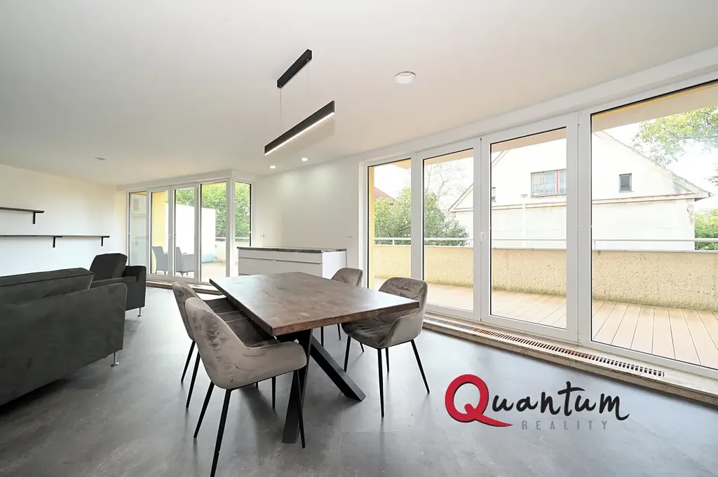 Exkluzivně nabízíme k pronájmu luxusní, nadstandardně vybavený prostorný byt 4+kk o podlahové ploše 167 m2 + velkoryse řešená terasa 53,7 m2 + balkon 2,6 m2. Byt se nachází ve zvýšeném přízemí moderní pětipodlažní budovy z r. 2010 v ulici Na Samotě, v blízkosti přírodní památky Prosecké skály.