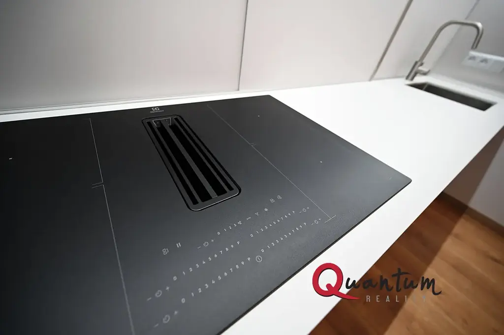 Součástí prodeje je kompletní vybavení bytu – kvalitní kuchyňská linka se spotřebiči a vestavěné skříně. Samozřejmostí je rekuperace s možností ovládání, technická místnost s prostorem pro pračku a sušičku a sklep umístěný v blízkosti parkovacího stání.